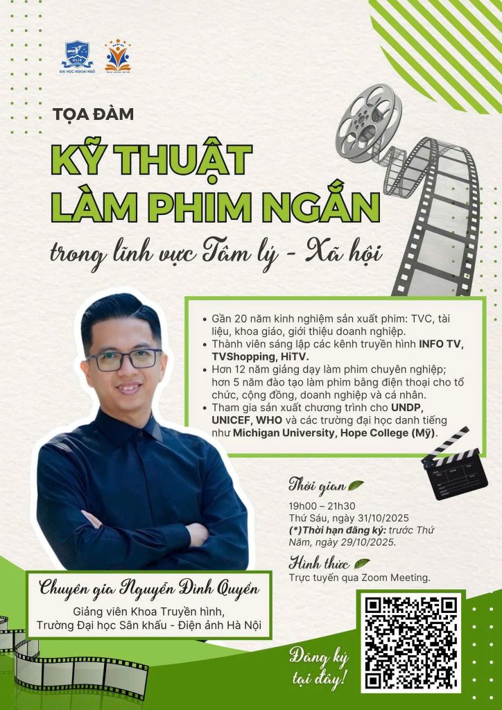 Khoa Tâm lý – Giáo dục Khai phóng, Trường Đại học Ngoại ngữ – ĐHQGHN trân trọng mời bạn tham dự buổi tọa đàm đặc biệt: