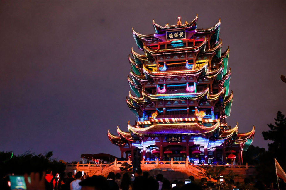 Sau những giờ phút trầm lắng, chúng em lại háo hức khám phá vẻ đẹp cổ kính nhưng được trang hoàng bởi màn trình diễn ánh sáng tại Hoàng Hạc Lâu. Làm cho người ta bất giác nhớ tới bài thơ của Lý Bạch: