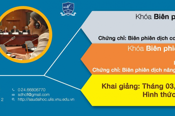 Trường ĐHNN-ĐHQGHN xin thông báo tuyển sinh các lớp Cấp chứng chỉ nghiệp vụ biên phiên dịch tiếng nước ngoài Khóa 02 (gồm 02 lớp: Bồi dưỡng nghiệp vụ biên – phiên dịch cơ bản và Bồi dưỡng nghiệp vụ biên – phiên dịch nâng