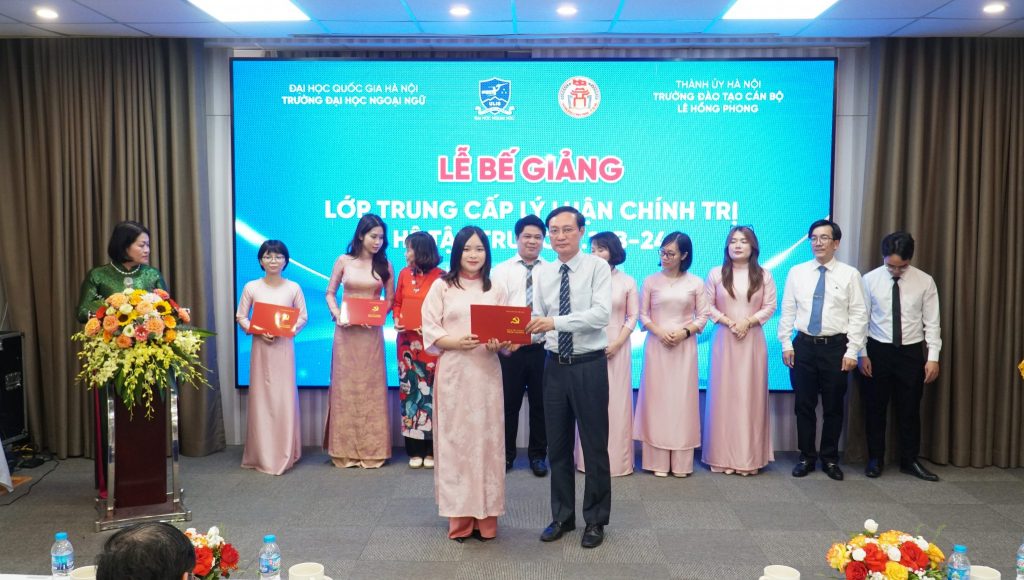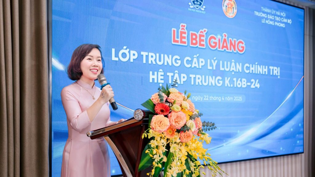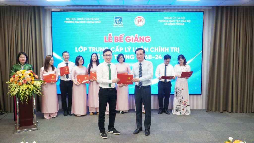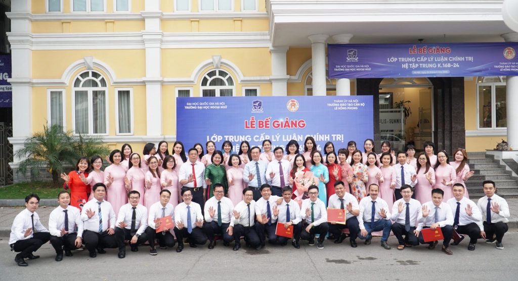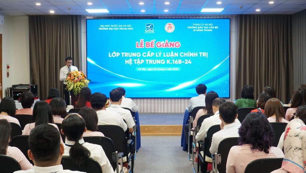 Ngày 22/4/2025, Trường Đại học Ngoại ngữ – Đại học Quốc gia Hà Nội phối hợp với Trường Đào tạo Cán bộ Lê Hồng Phong đã long trọng tổ chức Lễ bế giảng lớp Trung cấp lý luận chính trị hệ tập trung cho 50 học viên K16B-24.