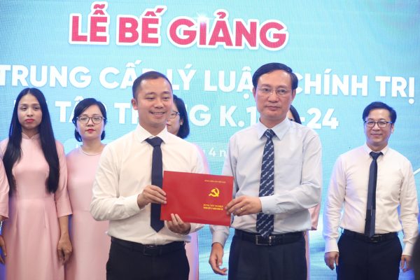 Tại buổi lễ, Trưởng phòng Đào tạo Trường Đào tạo Cán bộ Lê Hồng Phong Đào Thị Hoàng Lan đã đọc công bố quyết định trao bằng tốt nghiệp và phần thưởng cho 50 học viên lớp Trung cấp lý luận chính trị hệ tập trung K16B-24.