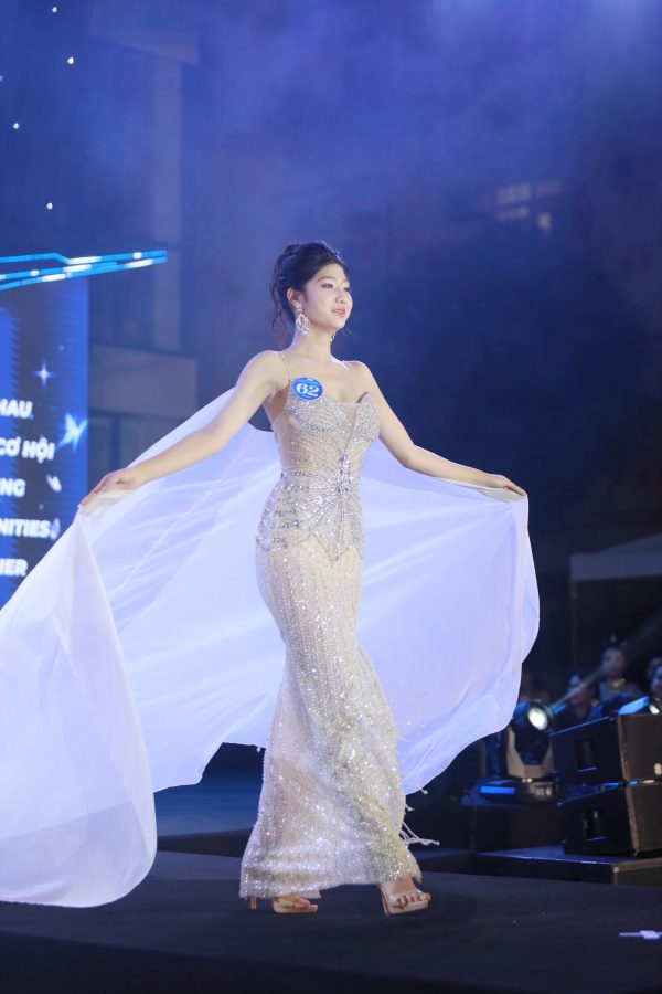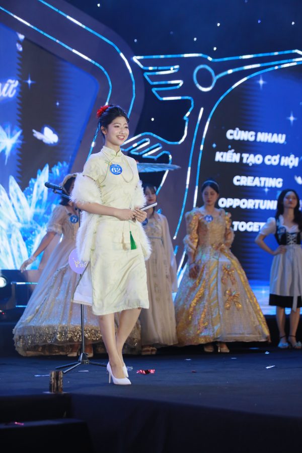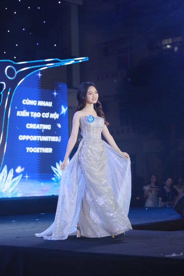 Không chỉ gây ấn tượng bởi ngoại hình nổi bật, các thí sinh còn khẳng định rõ nét năng lực và phẩm chất ưu tú của mình nhờ bản lĩnh vững vàng, khả năng ngôn ngữ vượt trội cùng phong thái tự tin, chuyên nghiệp. Qua từng vòng thi – từ phần thi hội nhập, tài năng đến phần thi ứng xử – họ đã không ngừng khẳng định phẩm chất toàn diện của một sinh viên Ngoại ngữ hiện đại: thông minh, sâu sắc, giàu lòng nhân ái và luôn sẵn sàng hội nhập trong môi trường toàn cầu.