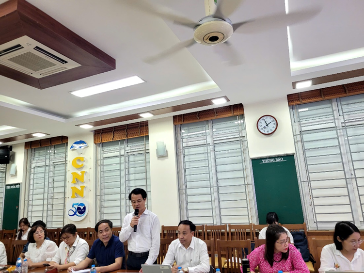 Following his presentation, representatives of member schools engaged in dynamic discussions, sharing experiences and proposing activities for the club. The meeting agreed on an executive structure consisting of a President, two Vice Presidents, and five Executive Committee members overseeing specialized divisions (Academics, Media & Events, Finance & Logistics, Cooperation & Development, and Secretariat). The election results were announced: Principal Nguyen Phu Chien was elected as President of CVES; Ms. Nguyen Thi Hien (Doan Thi Diem Primary School) and Mr. Luu Van Thong (Cau Giay Secondary School) as Vice Presidents. The elected members of the specialized divisions were also introduced. The meeting also set out a preliminary action plan for the first year: organizing training sessions for core teachers, establishing inter-school communication channels, piloting at least two ESL teaching models, holding regional workshops, and summarizing and honoring outstanding practices at the end of the academic year.