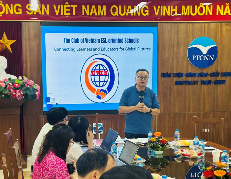 Next, Principal Nguyen Phu Chien presented an overview of CVES, clarifying its purposes, significance, regulations, orientations, and membership benefits. He emphasized that CVES is built on the principle of Voluntarism – Cooperation – Co-development, with professional expertise at the core, focusing on innovation, integration, and the application of technology in teaching. Member schools will join a nationwide ESL professional network, take part in training and workshops, access shared resources, engage in teacher-student exchanges, foster international cooperation, and be recognized for exemplary models.