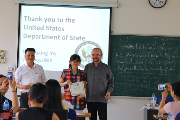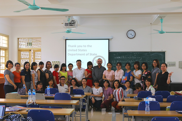 Nhằm nâng cao, phát triển kỹ năng chuyên môn cho học viên cao học và nghiên cứu sinh chuyên ngành tiếng Anh, ngày 31/5/2018, Trường Đại học Ngoại ngữ – Đại học Quốc gia Hà Nội phối hợp với Đại sứ quán Hoa Kỳ đã tổ chức hoạt động bồi dưỡng và chia sẻ kiến thức do GS. Marc Helgesen là diễn giả.