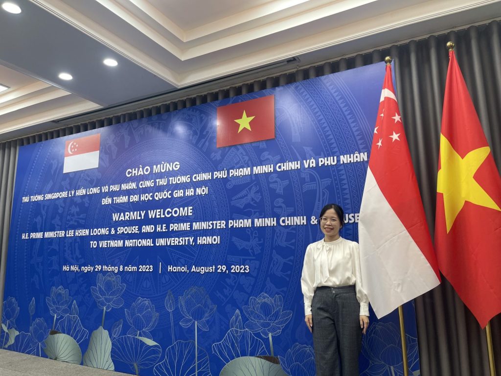 Hương Giang trong lần tiếp đón Thủ tướng nước CHXHCNVN – Singapore và Phu nhân tới thăm Đại học Quốc gia Hà Nội