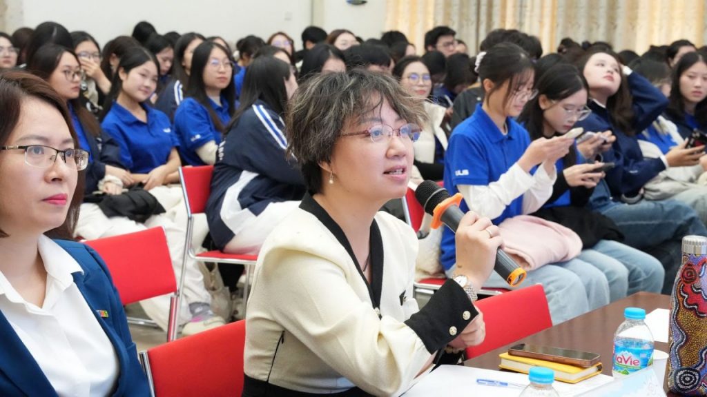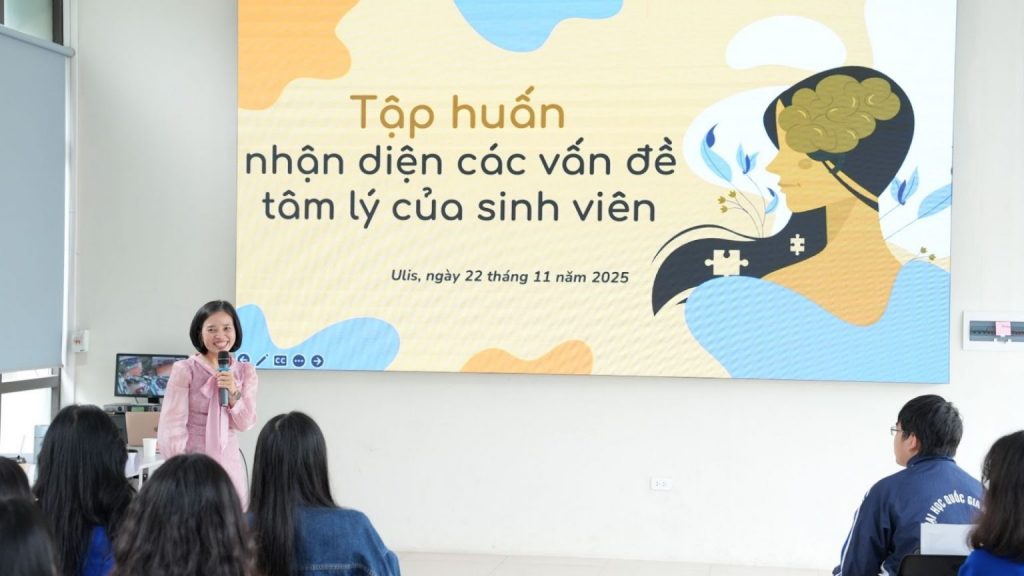 Nối tiếp là chương trình tập huấn công tác sinh viên và kỹ năng nhận diện vấn đề tâm lý của sinh viên. TS. Đào Thị Diệu Linh và ThS.NCS Nguyễn Thị Phương đã trình bày những dấu hiệu phổ biến liên quan đến căng thẳng học tập, áp lực thành tích, rối loạn cảm xúc và những khó khăn trong giao tiếp hay thích nghi môi trường mới. Bên cạnh phần lý thuyết, chương trình cũng lồng ghép câu hỏi thực tế giúp các nhóm có cơ hội trao đổi, phân tích và thực hành cách tiếp cận phù hợp khi hỗ trợ bạn học gặp khó khăn.