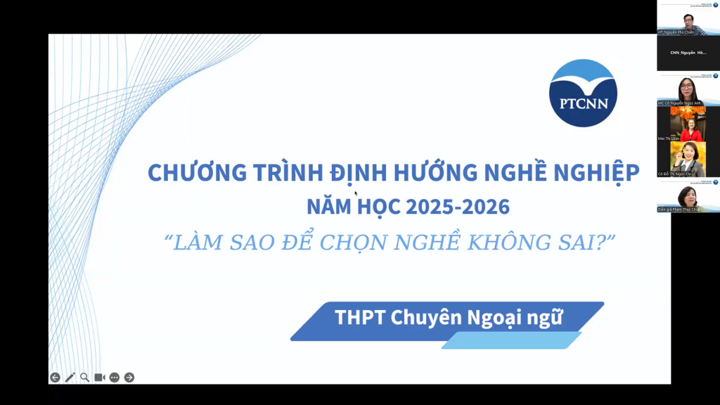 Sáng ngày 28/8/2025, Trường THPT Chuyên Ngoại ngữ đã tổ chức Chương trình Định hướng nghề nghiệp cho học sinh cả ba khối 10, 11 và 12 với chủ đề “Làm sao để chọn nghề không sai?”. Chương trình mang đến nhiều thông tin thiết thực về giáo dục và thị trường lao động, giúp học sinh xác định ngành nghề phù hợp, xây dựng kế hoạch học tập và chuẩn bị cho hành trình vào đại học trong nước cũng như du học quốc tế.