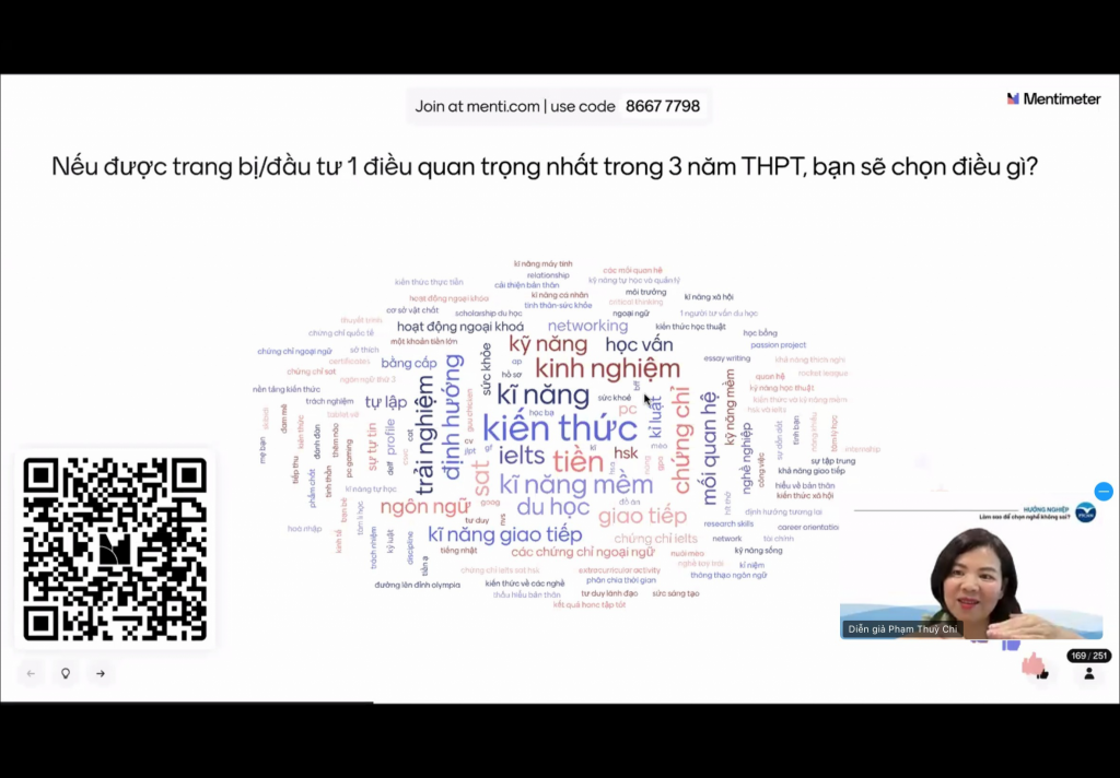 Phần hỏi đáp cuối chương trình diễn ra sôi nổi với nhiều câu hỏi từ học sinh và phụ huynh, tập trung vào việc lựa chọn ngành nghề, định hướng hoạt động ngoại khóa phù hợp cũng như gợi ý các nhóm kỹ năng cần thiết trong thời đại mới. Các diễn giả đã đưa ra những lời khuyên cụ thể, thực tiễn và truyền cảm hứng.