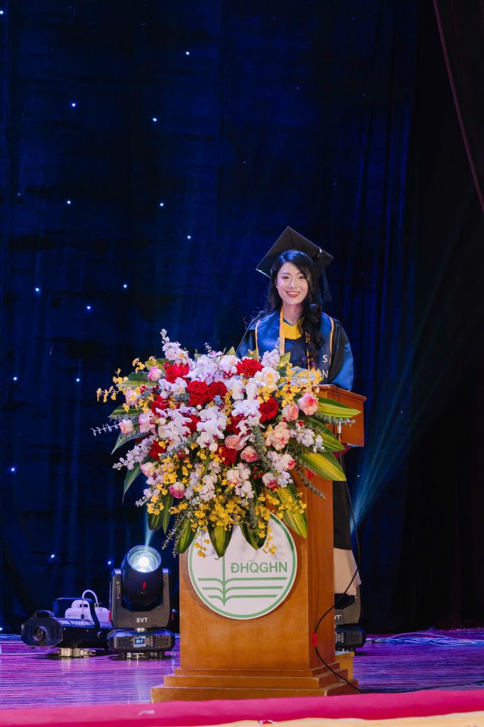 Hà Kiều Linh cũng có lời gửi gắm đến mái nhà chung ULIS, cô bày tỏ lòng biết ơn tới ngôi nhà chung ULIS vì đã cho mình một môi trường tuyệt vời để phát triển bản thân trong suốt bốn năm thanh xuân đại học. “Với mình, ULIS không chỉ là một ngôi trường, mà còn là nơi nuôi dưỡng và chắp cánh cho ước mơ, khát vọng của bản thân. ULIS đã trao cho mình cơ hội được phát triển trong môi trường học tập năng động, khuyến khích sự sáng tạo và đổi mới. Cũng tại nơi đây, Linh không chỉ được trau dồi kiến thức chuyên môn mà còn được tham gia vào nhiều hoạt động ngoại khóa, tạo dựng các mối quan hệ và học hỏi từ các thầy cô và bạn bè. Đặc biệt, mình muốn gửi những lời cảm ơn sâu sắc và thân thương nhất tới Khoa Đào tạo và Bồi dưỡng Ngoại ngữ bởi đã mang tới cho mình môi trường giáo dục quốc tế toàn diện. Nơi đây không chỉ giúp Kiều Linh tiếp thu kiến thức mà còn xây dựng nền tảng vững chắc về kỹ năng nghiên cứu, kỹ năng lãnh đạo và tinh thần trách nhiệm xã hội. Những trải nghiệm này chính là bệ phóng vững chắc để Kiều Linh tiếp tục chạm tới những mục tiêu cao và xa hơn trong tương lai.”