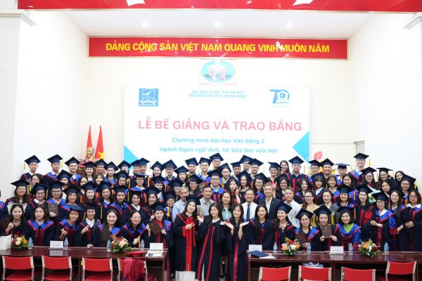 Ngày 21/12/2025, Trường Đại học Ngoại ngữ – Đại học Quốc gia Hà Nội đã tổ chức Lễ Bế giảng và trao bằng cử nhân chương trình đào tạo Đại học Văn bằng 2 hệ Vừa làm vừa học Ngành Ngôn ngữ Anh Khóa QH.2023.F.2.E