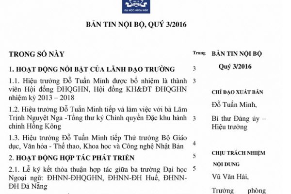 Tiếp theo thông báo số 1 ngày 09/9/2016, Trường Đại học Ngoại ngữ – ĐHQGHN xin trân trọng thông báo một số nội dung quan trọng của Hội thảo Khoa học Quốc gia 2017 với chủ đề “Nghiên cứu và Giảng dạy ngoại ngữ, ngôn ngữ