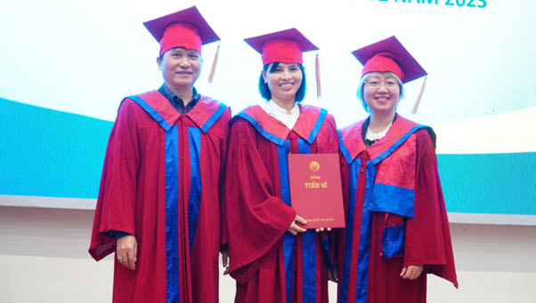 Với các bạn NCS và học viên khóa mới, mình muốn được gửi gắm đến các bạn một thông điệp rằng: con đường học thuật thực sự không dễ dàng nhưng chúng ta có đủ tự tin để chinh phục nó. Bên cạnh những điều kiện tốt đẹp mà Thầy cô và nhà Trường trao cho như đã nói ở trên thì rất có thể sẽ có rất nhiều khó khăn thách thức đang chờ các bạn vượt qua bởi ngoài nhiệm vụ là học tập, nghiên cứu ở trường ra thì chúng ta còn phải hoàn thành tốt các nhiệm vụ chuyên môn tại đơn vị nơi đang công tác, hoàn thành nhiệm vụ trong nhiều vai, là mẹ, là vợ (chồng), là con khiến việc học tập của chúng ta càng trở nên vất vả. Tuy nhiên, từ kinh nghiệm của bản thân (là mẹ của 3 bạn nhỏ trong hành trình 2 vợ chồng đồng cam cộng khổ để vừa nuôi dạy con tốt, vừa có thể chinh phục được đỉnh cao tri thức), mình nhận thấy rằng chỉ cần nỗ lực bền bỉ, kiên trì, quyết tâm thì nhất định chúng ta sẽ đi được tới đích thành công. Ngoài ra sau khi bảo vệ thành công luận án, mình càng cảm nhận sâu sắc hơn rằng con đường khó khăn mà mình đã lựa chọn là rất đáng; vậy nên mong tất cả chúng ta sẽ cố gắng và cập bến thành công.
