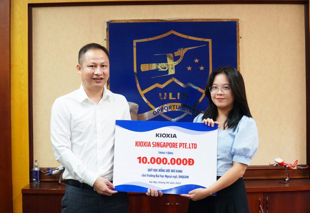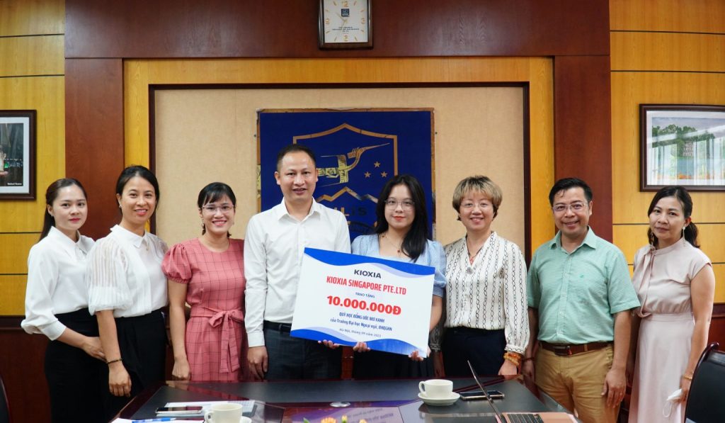Nhân dịp này, đại diện KIOXIA đã trao tặng 10 triệu đồng cho Quỹ học bổng Ước mơ Xanh của Nhà trường.