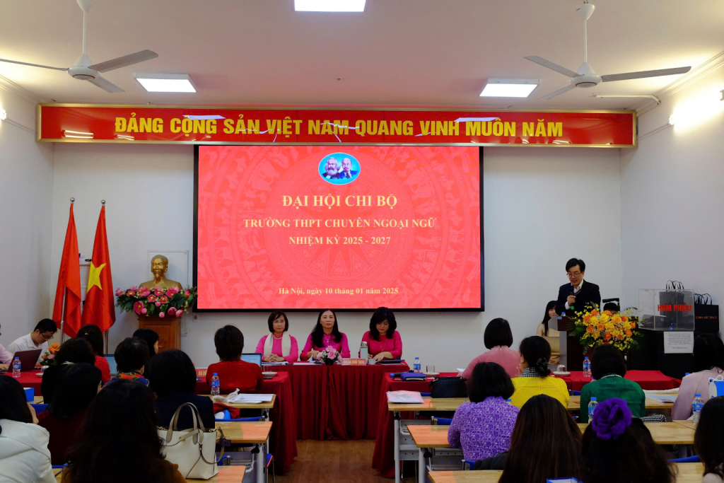 Thực hiện Điều lệ Đảng và chỉ đạo của Đảng ủy Trường Đại học Ngoại ngữ, ĐHQGHN, ngày 10/1/2025, Chi bộ Trường THPT Chuyên Ngoại ngữ tổ chức Đại hội Chi bộ nhiệm kỳ 2025 – 2027.