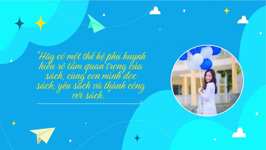 Khi dạy học cho các bạn nhỏ, Hương nhận ra một hiện tượng rất rõ ràng là: các bạn thường xuyên đọc sách, dù là bất cứ thể loại nào, đều phát triển tư duy logic và năng lực biểu đạt tốt hơn rất nhiều so với những bạn ít đọc. Tư duy logic rõ ràng, mạch lạc khiến các bạn hiểu bài nhanh hơn, tốt hơn, nhớ bài lâu hơn cũng như có những sáng tạo mới thú vị trong quá trình học, mà chắc chắn trong tương lai xa hơn, nó sẽ là một tài sản quý giá để các bạn chinh phục những ước mơ của mình.