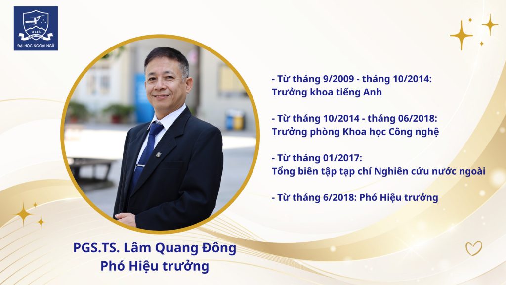 Nhân dịp PGS.TS. Lâm Quang Đông được giao đảm nhiệm vai trò Uỷ viên Hội đồng Giáo sư ngành Ngôn ngữ học trong nhiệm kỳ năm 2024, hãy cùng ULIS Media gặp gỡ và lắng nghe những chia sẻ quý giá từ thầy nhé!