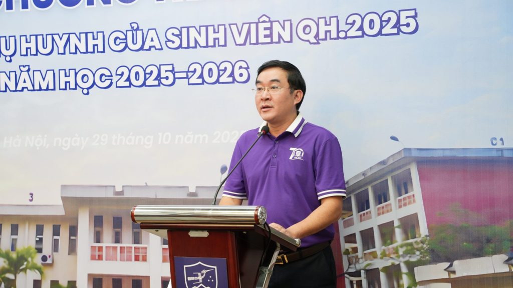 Phát biểu khai mạc buổi lễ, Chủ tịch Hội đồng trường Đỗ Tuấn Minh đã gửi lời chào trân trọng và lời chúc mừng tới quý phụ huynh khi con em mình chính thức trở thành sinh viên của Trường Đại học Ngoại ngữ – Đại học Quốc gia Hà Nội. Đây là lần đầu tiên Nhà trường tổ chức buổi gặp mặt phụ huynh sinh viên năm thứ nhất với mong muốn đổi mới toàn diện hoạt động dạy – học và hỗ trợ người học. Trong bài phát biểu, Chủ tịch Hội đồng trường đã giới thiệu định hướng và chiến lược phát triển của Nhà trường trong giai đoạn mới, đồng thời bày tỏ kỳ vọng vào sự phối hợp chặt chẽ giữa Nhà trường và phụ huynh trong việc đồng hành, nuôi dưỡng và đào tạo những công dân có năng lực, trách nhiệm và nhân cách tốt.