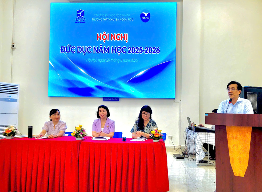 Ngày 29/8/2025, trường THPT Chuyên Ngoại ngữ đã tổ chức thành công Hội nghị Đức dục năm học 2025-2026. Đây là Hội nghị thường niên nhằm mục đích nâng cao hơn nữa hiệu quả các hoạt động giáo dục trong nhà trường, hướng tới hình thành và phát triển Chân dung học sinh Chuyên ngoại ngữ với 7 phẩm chất và 10 năng lực theo Khung phẩm chất và năng lực học sinh Chuyên Ngoại ngữ.
