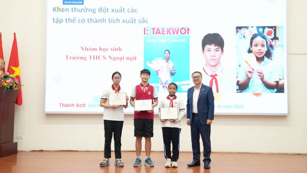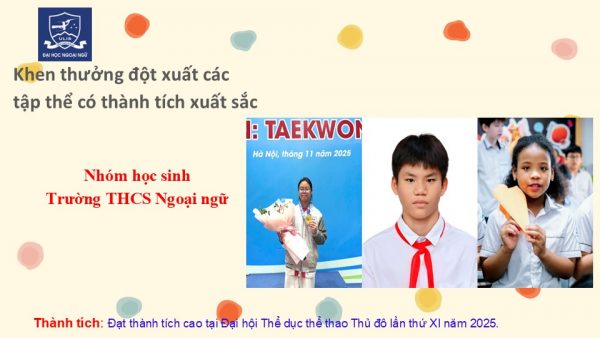 – Nhóm học sinh Trường THCS Ngoại ngữ vì đạt thành tích cao tại Đại hội Thể dục thể thao Thủ đô lần thứ XI năm 2025.
