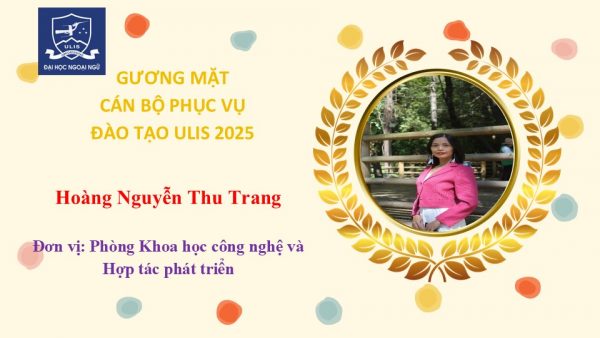 – Gương mặt giảng viên ULIS: Cô Nguyễn Hoàng Anh (Khoa NN&VH Trung Quốc), Cô Chu Thị Phong Lan (Khoa NN-VH Việt Nam & Đông Nam Á), Cô Lê Thị Minh Nguyệt (Khoa NN&VH Nhật Bản), Cô Vũ Thanh Thảo (Trường THPT Chuyên Ngoại ngữ), ThS. Đặng Thị Phượng (Khoa NN&VH Anh).