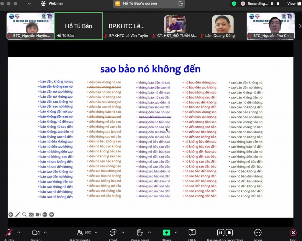 Tối ngày 27/5/2025, trên Zoom Webinar, Trường Đại học Ngoại ngữ – Đại học Quốc gia Hà Nội đã tổ chức Hội nghị triển khai kế hoạch chuyển đổi số tại trường THPT Chuyên Ngoại ngữ và THCS Ngoại ngữ giai đoạn 2025 – 2030. Hội nghị nhằm hướng đến việc ứng dụng AI vào trong quá trình tiếp cận, sử dụng trí truệ nhân tạo trong quản trị trường học, trong dạy học, trong kiểm tra đánh giá và trong tương tác nhà trường- học sinh- phụ huynh.