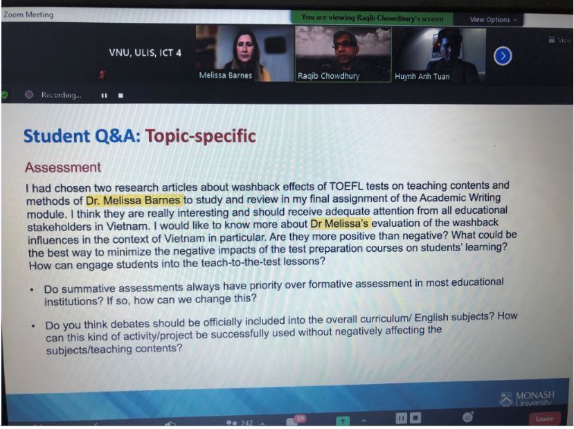 Hậu hội thảo IGRS, Nhà trường kết hợp với Trường Đại học Monash tổ chức 1 buổi tọa đàm bàn tròn trực tuyến giải đáp các vấn đề học thuật, viết luận văn/luận án, công bố quốc tế và các vấn đề quan tâm khác của học viên và nghiên cứu sinh. Buổi tọa đàm thu hút hơn 245 học viên và nghiên cứu sinh tham dự.
