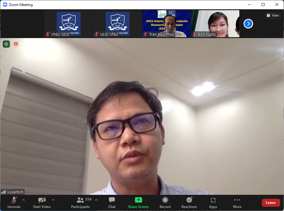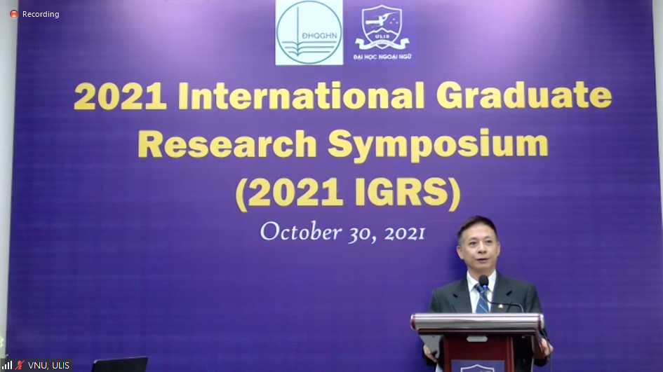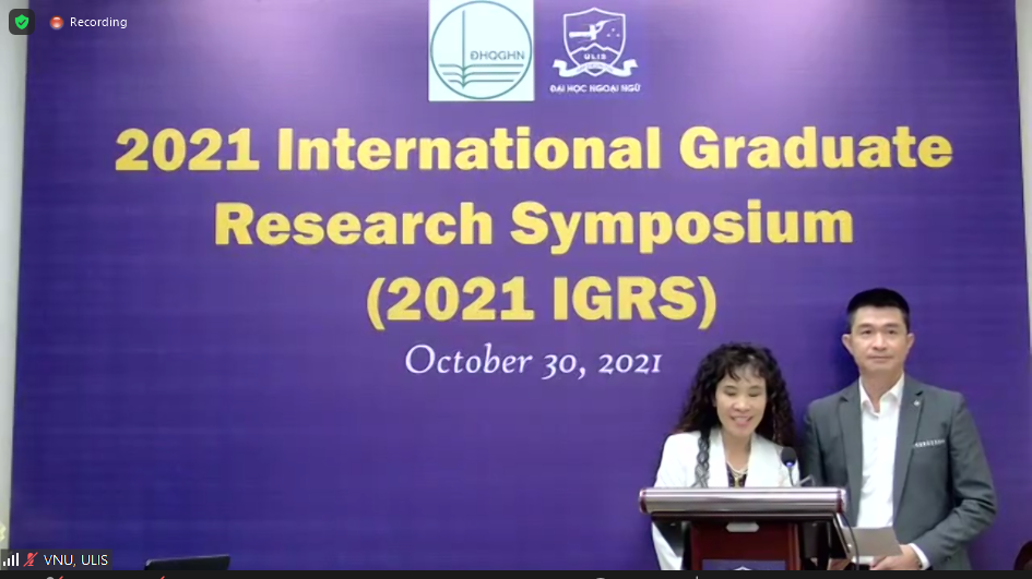 Ngày 30/10/2021, Trường Đại học Ngoại ngữ – Đại học Quốc gia Hà Nội đã tổ chức Hội thảo khoa học quốc tế dành cho học viên cao học và nghiên cứu sinh năm 2021 (2021 IGRS).