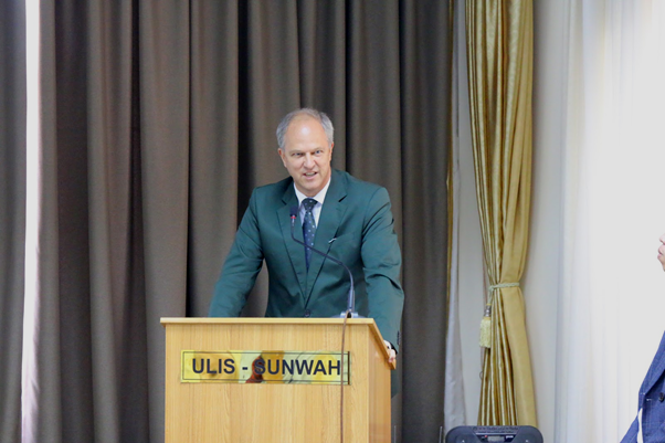 “Ngày hôm này là lễ khai giảng chính thức của Chương trình đào tạo liên kết quốc tế, nhưng lại là sự tiếp tục và có thể nói là bước ngoặt của hoạt động hợp tác tích cực giữa các bên từ nhiều năm nay. Cho phép tôi nhân dịp này được gửi lời cảm ơn sâu sắc và chân thành nhất đến tất cả các cá nhân, tổ chức của hai nước. Chúng ta có mặt ở đây hôm nay để chia vui với nhau, để chúc mừng nhau, nhưng quan trọng hơn cả là để chúc mừng các học viên trúng tuyển vào Chương trình liên kết quốc tế. Xin cảm ơn các bạn đã tham gia Chương trình và tôi tin rằng, Chương trình sẽ là một cơ hội lớn đối với các bạn. Tất cả chúng ta ở đây hôm nay là những người cùng “kiến tạo“ nên cơ hội này cho các học viên, đúng như triết lý hành động của Trường chúng tôi “cùng nhau kiến tạo cơ hội“.