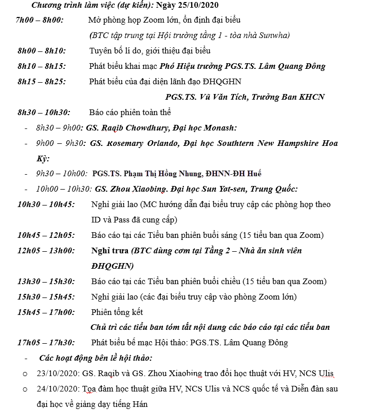 Nội dung, chương trình làm việc và các hoạt động bên lề hội thảo: