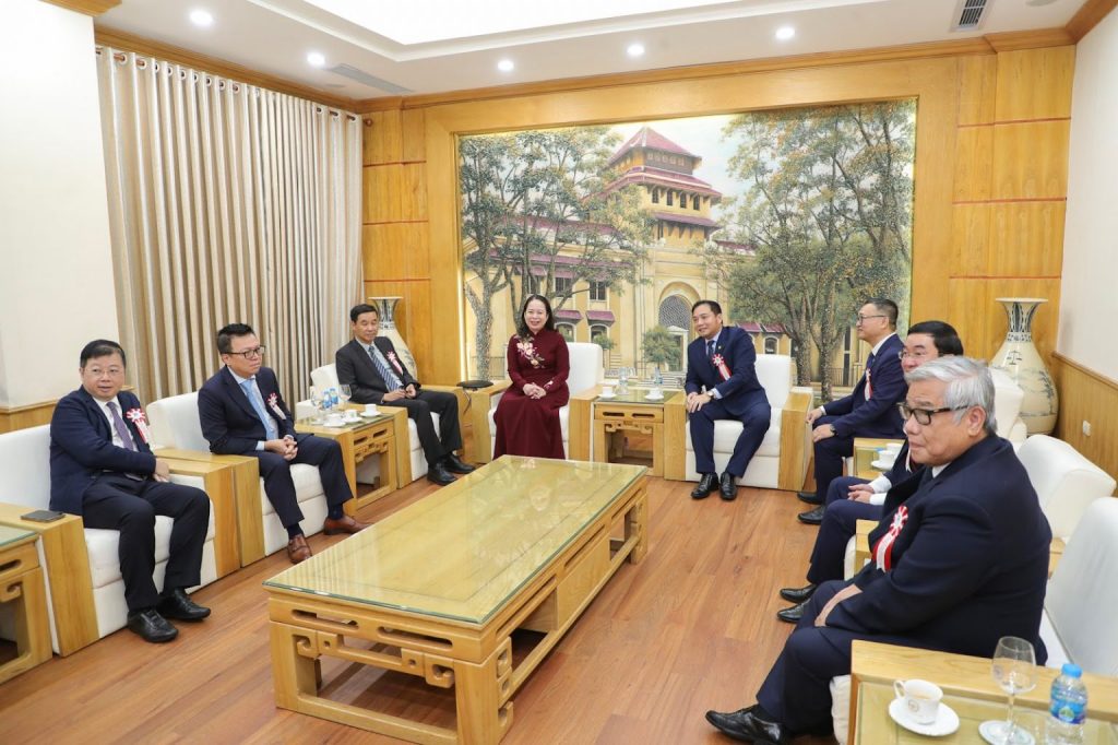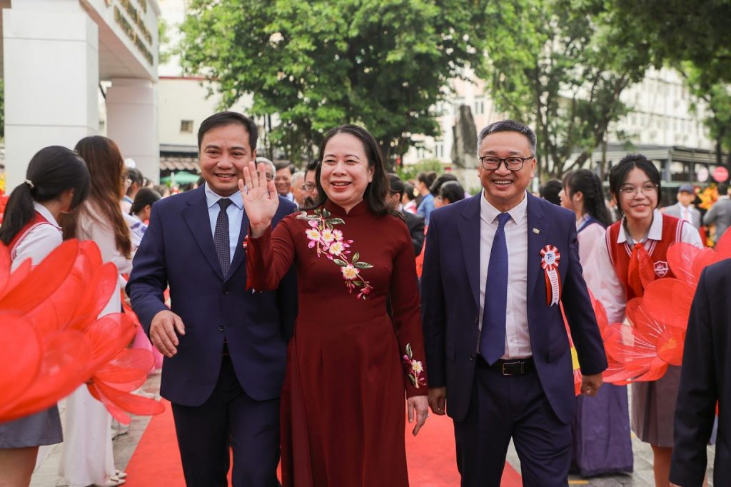 Ủy viên Ban chấp hành Trung ương Đảng Cộng sản Việt Nam, Phó Chủ tịch nước Võ Thị Ánh Xuân dự buổi lễ và trao Huân chương Lao động hạng Nhất cho Trường Đại học Ngoại ngữ.