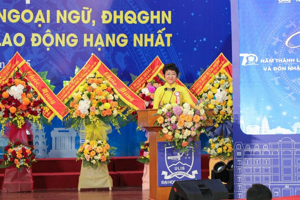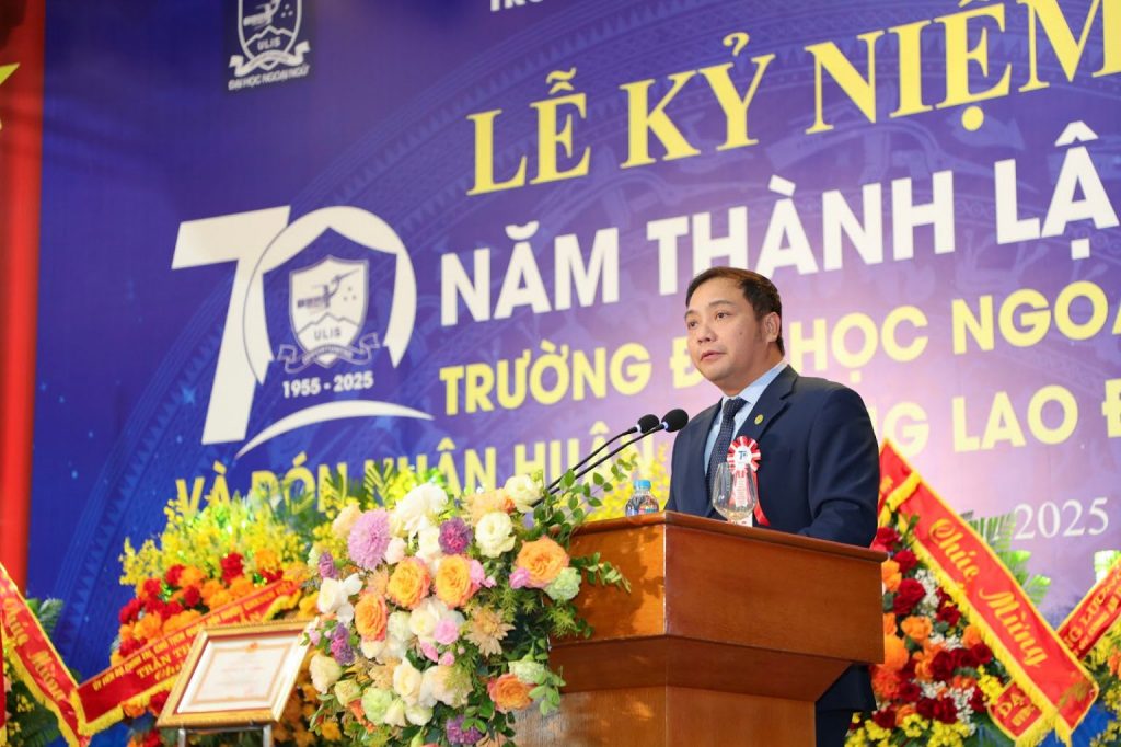 Phát biểu tại lễ kỷ niệm, PGS.TS. Đào Thanh Trường, Phó Giám đốc ĐHQGHN đã nhấn mạnh 70 năm là dấu mốc quan trọng không chỉ của Trường Đại học Ngoại ngữ và ĐHQGHN mà còn của toàn hệ thống giáo dục Việt Nam. Phó Giám đốc ĐHQGHN gửi lời cảm ơn sâu sắc tới lãnh đạo Bộ Giáo dục và Đào tạo, các bộ, ban, ngành trung ương và địa phương, cùng các đại sứ quán và tổ chức quốc tế, đã đồng hành, hỗ trợ Trường Đại học Ngoại ngữ trong suốt quá trình phát triển. Qua 70 năm, Nhà trường đã đào tạo nhiều thế hệ cán bộ, giáo viên và chuyên gia xuất sắc, giữ gìn bản sắc, truyền thống ULIS, đồng thời nâng cao uy tín và thương hiệu.