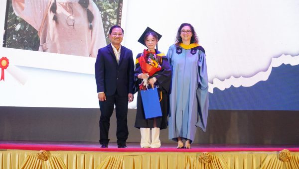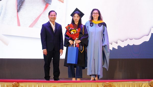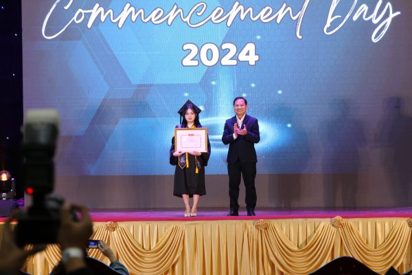 Tại lễ tốt nghiệp, Phó Hiệu trưởng Hoa Ngọc Sơn đã gửi lời chúc mừng và bày tỏ niềm tự hào về những nỗ lực vượt bậc của 78 tân cử nhân. Quãng thời gian 4 năm đã giúp các sinh viên không chỉ tiếp thu kiến thức chuyên ngành mà còn trưởng thành và gắn bó hơn với ngôi trường yêu dấu. Trải qua những khó khăn từ đại dịch Covid-19, các sinh viên đã kiên trì vượt qua để cầm trên tay tấm bằng cử nhân và bắt đầu một hành trình mới. Bên cạnh đó, Phó Hiệu trưởng Hoa Ngọc Sơn cũng gửi lời cảm ơn sâu sắc đến các thầy cô và phụ huynh đã luôn sát cánh và hỗ trợ sinh viên. “Thành công của các em cũng là thành công của thầy cô”.
