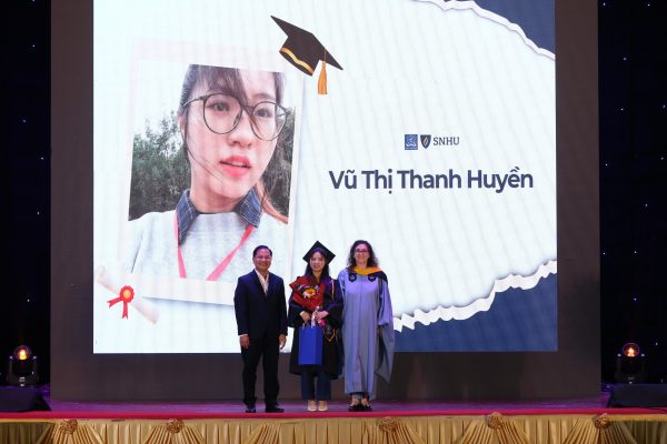Phó Chủ tịch sáng kiến toàn cầu của Đại học Southern New Hampshire Rachael Sears cũng gửi lời chúc mừng các tân cử nhân. Bày tỏ tin tưởng tương lai rực rỡ đang chờ đón ở phía trước, bà cũng gửi lời động viên tiếp tục phấn đấu, rèn luyện tới các cựu sinh viên.