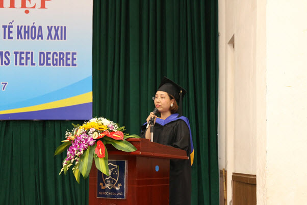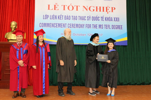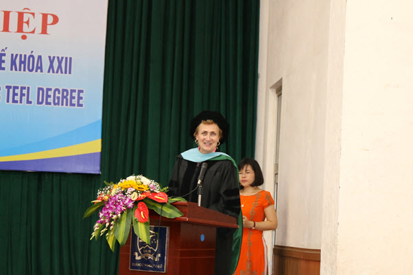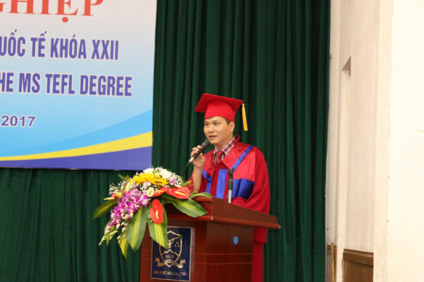 Phát biểu trong buổi lễ, Phó Hiệu trưởng Ngô Minh Thủy đã gửi lời chúc mừng tới 22 tân Thạc sỹ theo học chương trình Liên kết quốc tế chuyên ngành Phương pháp dạy học bộ môn Tiếng Anh khóa 22 liên kết với Đại học tổng hợp Southern New Hampshire (Hoa Kỳ). Bà cho biết chương trình Thạc sỹ Phương pháp dạy học Tiếng Anh liên kết với Đại học Southern New Hampshire được bắt đầu thực hiện từ năm 2007 và tính đến nay có tổng cộng 470 học viên đã và đang theo học. Được học tập, nghiên cứu theo chương trình liên kết giữa hai trường đại học uy tín của Việt Nam và Hoa Kỳ, Nhà trường tin rằng các học viên đã và đang được cung cấp những điều kiện tốt nhất cho việc nâng cao trình độ chuyên môn và kỹ năng nghiên cứu.
