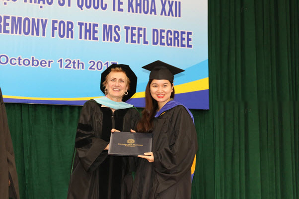 Trong lễ tốt nghiệp, GS. Rosemary Orlando đã thay mặt Ban Giám hiệu hai trường trao bằng cho 22 học viên. Đại diện cho các tân Thạc sĩ, học viên Nguyễn Thị Mai Hương đã bày tỏ niềm cảm ơn sâu sắc đối với Nhà trường và các thầy cô giảng dạy, quản lý. Cô khẳng định thời gian học cao học tại trường là những kỷ niệm vô cùng ý nghĩa và sẽ nỗ lực tiếp tục phấn đấu để không phụ lòng thầy cô.
