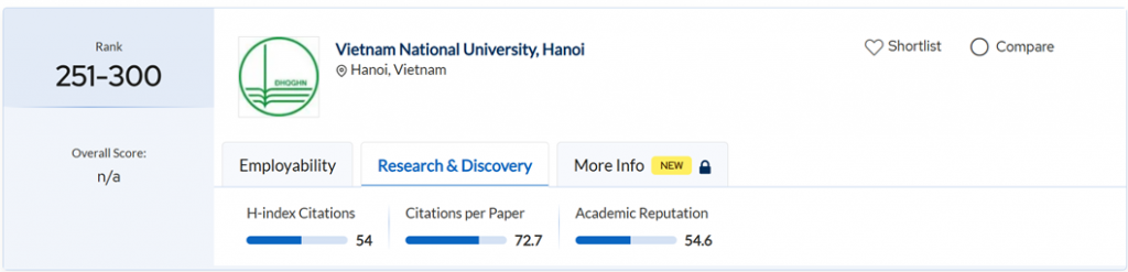 Tóm lại, trong kết quả chung của ĐHQGHN, Trường Đại học Ngoại ngữ là một trong những đơn vị trực tiếp triển khai các hoạt động gắn với tiêu chí xếp hạng trong lĩnh vực ngôn ngữ. Là đơn vị đào tạo chuyên sâu về ngoại ngữ, ngôn ngữ và quốc tế học, Nhà trường đóng vai trò quan trọng trong việc thúc đẩy nghiên cứu, gia tăng công bố quốc tế và phát triển các hướng tiếp cận liên ngành trong ĐHQGHN.