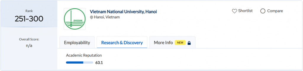 QS WUR by Subject 2026: Lĩnh vực Ngôn ngữ học và Ngôn ngữ hiện đại của Đại học Quốc gia Hà Nội vào top 300 thế giới