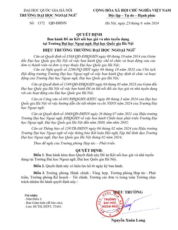 Bên cạnh đó, việc ban hành và triển khai Đề án kết nối học giả và nhà tuyển dụng đã cụ thể hóa định hướng xây dựng mạng lưới đối tác học thuật và nghề nghiệp của Nhà trường, hướng tới nâng cao uy tín học thuật, tăng cường hiện diện quốc tế và hỗ trợ trực tiếp cho công tác xếp hạng trong lĩnh vực ngôn ngữ