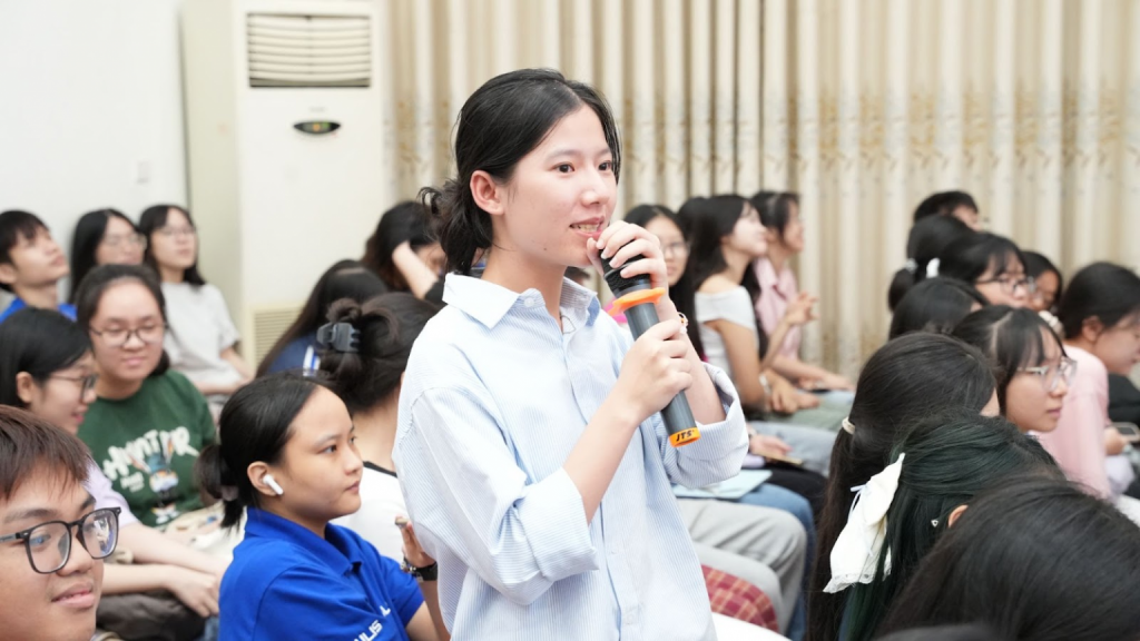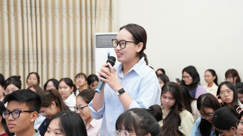 Các sinh viên đã hào hứng giao lưu với diễn giả về những thắc mắc hoặc vấn đề của bản thân trong việc đọc sách và cùng chia sẻ câu chuyện của bản thân xoay quanh chủ đề này.