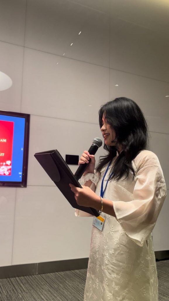 Khoa Ngôn ngữ và Văn hoá Ả Rập – Trường Đại học Ngoại ngữ, Đại học Quốc gia Hà Nội (ULIS) vô cùng vinh dự khi hai sinh viên ưu tú của Khoa là Dương Thùy Linh và Đỗ Quang Minh đã được mời tham dự buổi gặp gỡ trang trọng này.