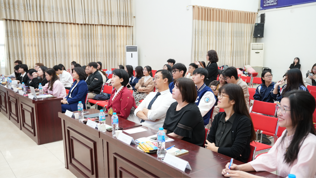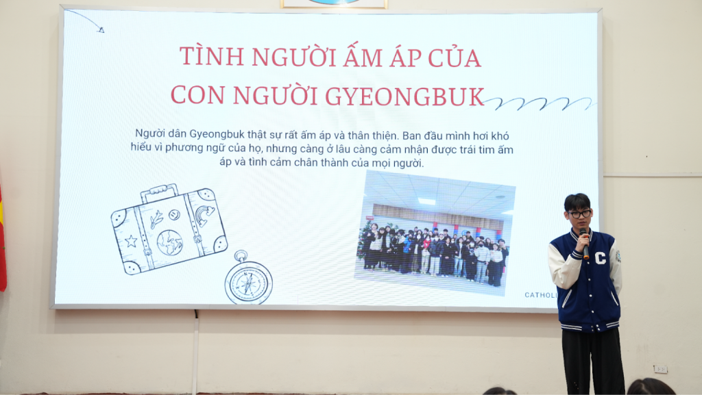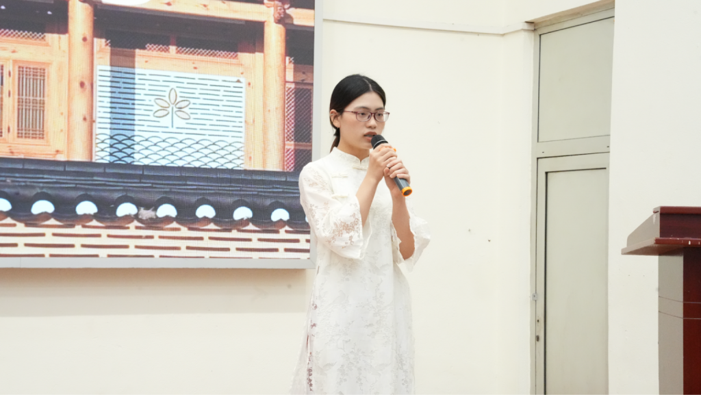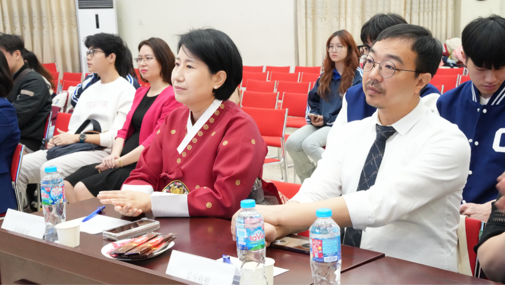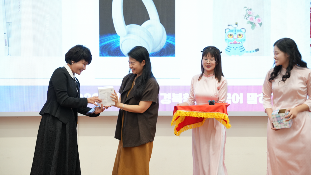 Một trong những người điểm nhấn đặc biệt của buổi lễ là bài phát biểu từ hai đại diện du học sinh Việt Nam đang sống và học tập tại Gyeongbuk: bạn Trương Văn Sơn và bạn Phạm Minh Đạt. Những chia sẻ chân thật về cuộc sống, trải nghiệm học tiếng Hàn và kinh nghiệm khi sinh sống tại Hàn Quốc đã mang đến cho chương trình góc nhìn gần gũi và truyền cảm hứng cho các học viên.