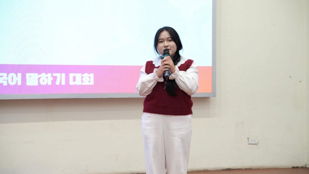Các thí sinh thể hiện khả năng tiếng Hàn qua nhiều hình thức trình bày như kể chuyện, thuyết trình, chia sẻ quan điểm. Nhiều phần thi gây ấn tượng mạnh bởi sự tự tin, sự chuẩn bị kỹ lưỡng và nội dung mang tính truyền cảm hứng. Mỗi bạn lần lượt trình bày về chủ đề của mình và trả lời câu hỏi, thể hiện khả năng thuyết trình cùng vốn hiểu biết sâu rộng về văn hoá Việt Nam và Hàn Quốc.