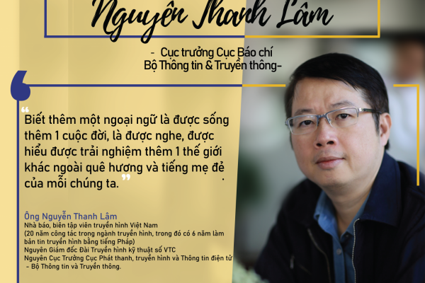 Anh Nguyễn Thanh Lâm hiện đang đảm nhiệm chức vụ Cục trưởng Cục Báo chí – Bộ Thông tin & Truyền thông. Tốt nghiệp Trường ĐH Ngoại ngữ – ĐHQGHN, anh theo đuổi sự nghiệp báo chí, biên tập viên truyền hình với 20 năm