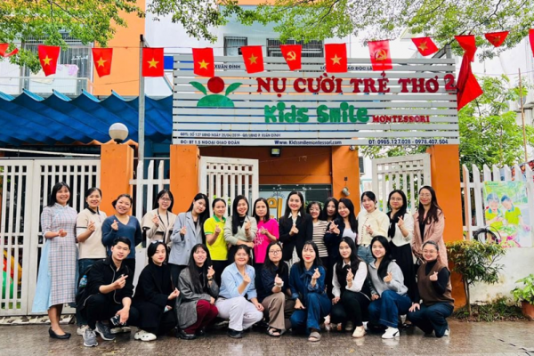 Các thành viên dự án Kết nối Phục vụ Cộng đồng tại lớp học tiếng Anh dành cho giáo viên mầm non Trong suốt 6 tháng hành trình chuẩn bị và triển khai, dự án Kết nối Phục vụ cộng đồng Cộng đồng do 15