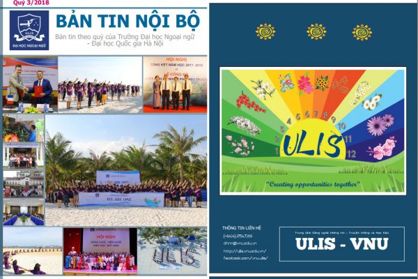 ULIS Media trân trọng giới thiệu ấn phẩm Bản tin nội bộ của Trường Đại học Ngoại ngữ – Đại học Quốc gia Hà Nội quý III năm 2018. Link: http://joom.ag/uYkY *Chú ý: Chọn chế độ Fullscreen ở góc trái để có thể xem rõ nhất