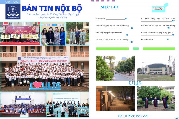 ULIS Media trân trọng giới thiệu ấn phẩm Bản tin nội bộ của Trường Đại học Ngoại ngữ – Đại học Quốc gia Hà Nội quý I năm 2021. Bản tin cung cấp những thông tin nổi bật của Nhà trường trong 3 tháng vừa