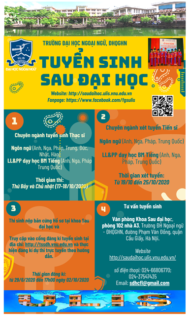 Thông báo tuyển sinh sau đại học đợt 2 năm 2020 của trường Đại học Ngoại ngữ – Đại học Quốc gia Hà Nội