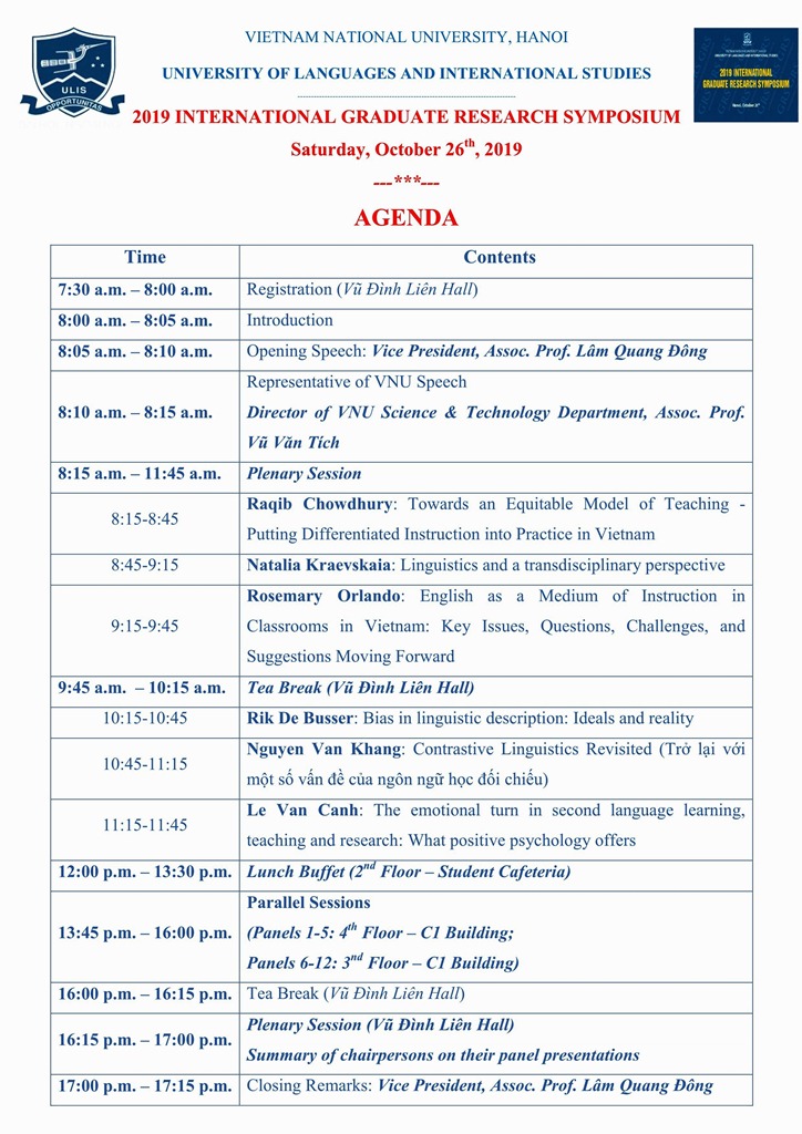 Địa điểm: Phòng 101 – A3 – Khoa Sau đại học, Trường Đại học Ngoại ngữ – Đại học Quốc gia Hà Nội