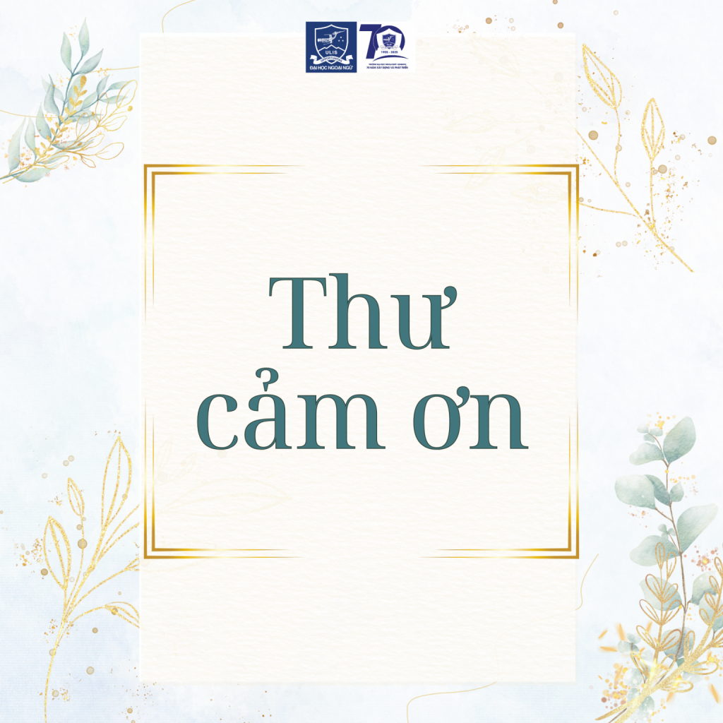 Thư cảm ơn nhân dịp kỷ niệm 70 năm thành lập Trường Đại học Ngoại ngữ, ĐHQGHN